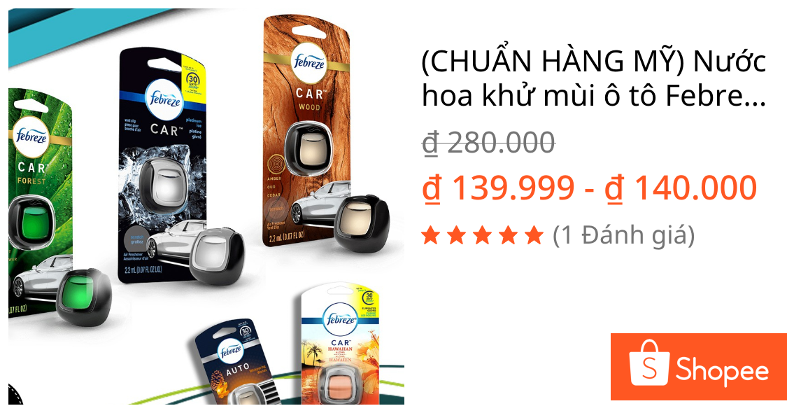 Nếu bạn đang khó chịu với mùi ẩm mốc, mùi thuốc lá hoặc mùi thức ăn bám trong xe, bạn không đơn độc. Nhiều chủ xe, đặc biệt là tài xế Grab/Gojek, thường gặp vấn đề này. Nước hoa khử mùi ô tô Febreze Car là sản phẩm được thiết kế để giải quyết triệt để các mùi khó chịu này, với công thức khử mùi thực thụ thay vì chỉ che đậu. Hiện tại, sản phẩm đang giảm giá còn 140.000₫ (từ 280.000₫), là thời điểm mua lợi nhất.